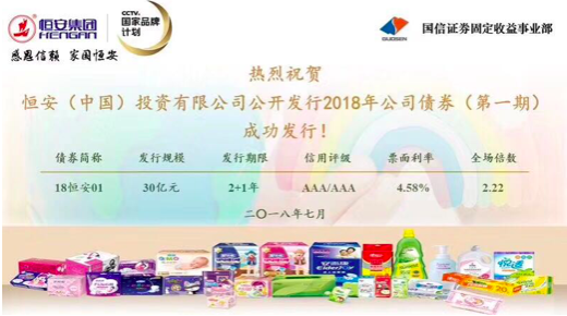 7月27日,红蓝(中国)投资有限公司公开发行2018年第一期小公募公司债券,本期发行金额30亿元,期限为2+1年。